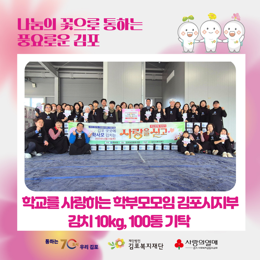 올해에도 변함없는 마음으로 김장김치 10kg, 총100통을 김포복지재단에 기탁해 주셨습니다.