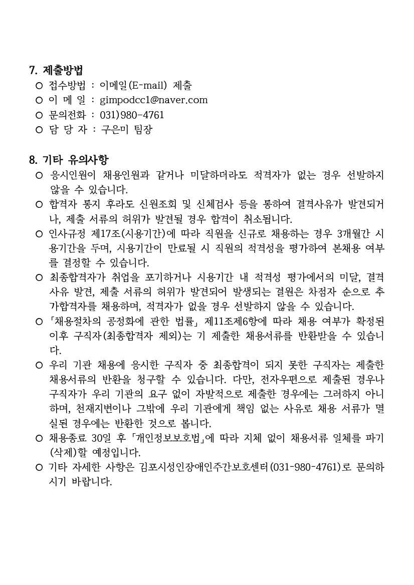 제2회 김포시성인장애인주간보호센터 직원채용 공고